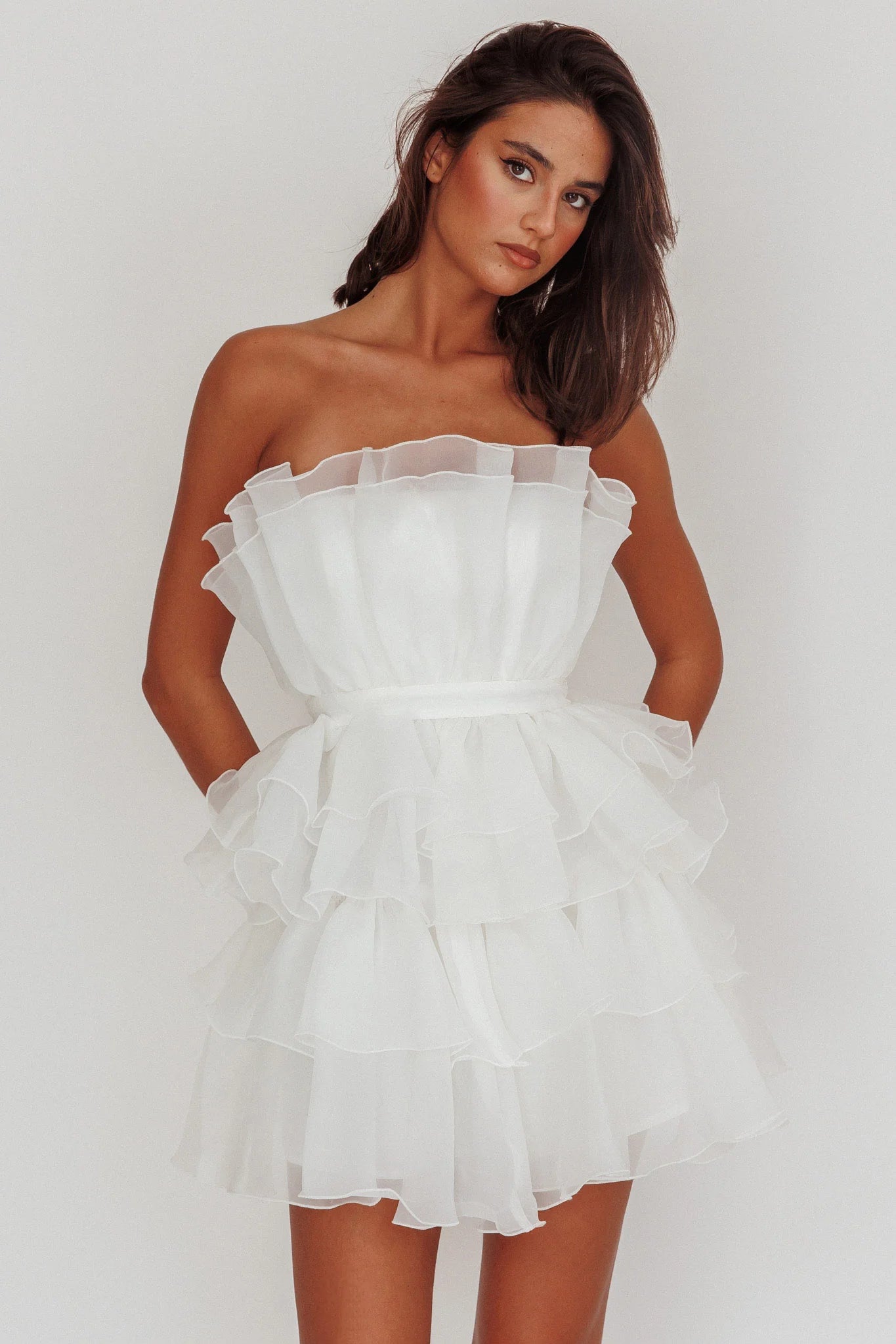 Bon Bon Tiered Organza Mini Dress White