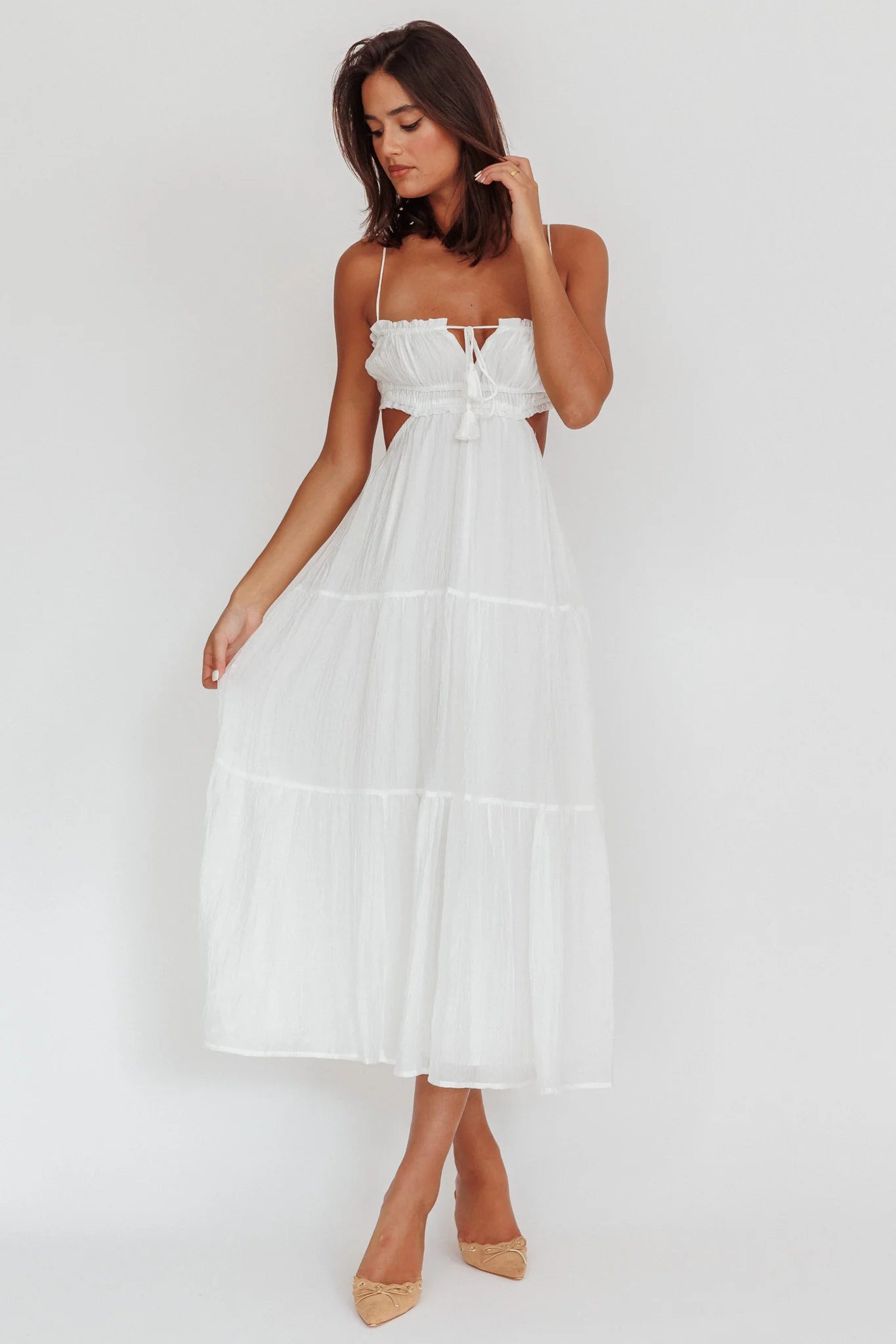 Eyona Cut-Out Waist Tie Maxi Dress White