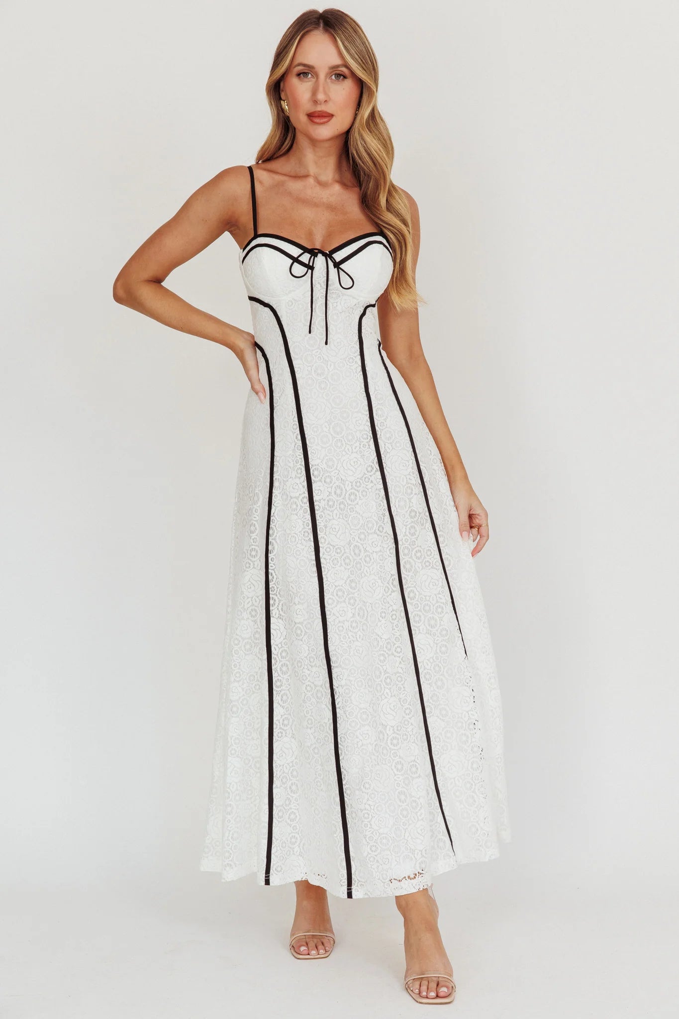 Find Your Way Lace Contrast Maxi Dress White